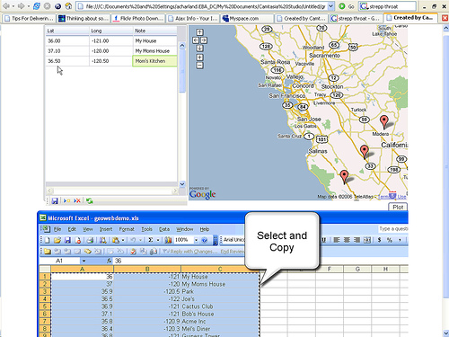 We wanted to show closer integration of the desktop and the browser environments. So we used a list of addresses (actually lat/long coordinates) in Excel, copied and pasted the list into the nitobi grid which was mashed-up with up with Google Maps. It was pretty slick, I’m not sure if I emphasized in my talk how important this type of workflow is going to be in the future. Users should have to make a cognitive switch between the desktop and web environment (IMO). If you I can see the data let me get copy it, paste it, drag it, drop it or move through it with the keyboard. Come on! I want arrow keys, tabbing, I want to send email by hitting ctrl+enter like I can on the desktop, these are not hard to implement they just take some thought and care from the application designer.