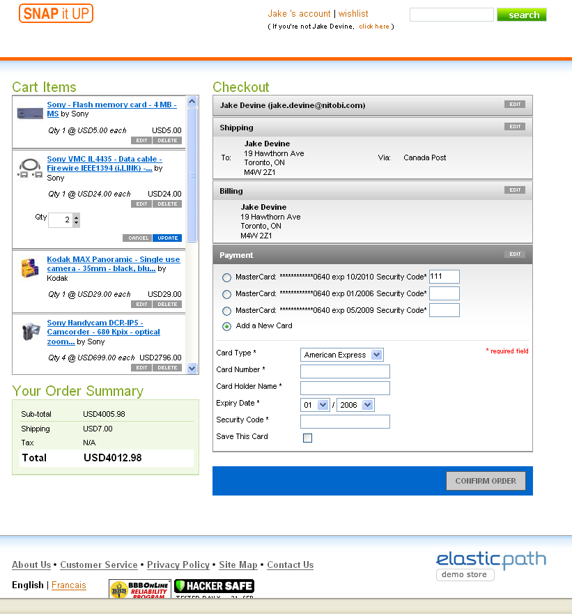 So we’ve been working with the crew at Elastic Path since late summer on a very cool application of Ajax to improve the conversion rates of their eCommerce platform for online shoppers. The goal was to reduce shopping cart abandonment by streamlining the check out process.